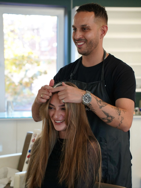 Косата на супермодела бе оформена с продукти от неговия собствен бранд Fragile Cosmetics – линия, създадена с философия за лекота, естествена текстура и „тих лукс“ в професионалната грижа.