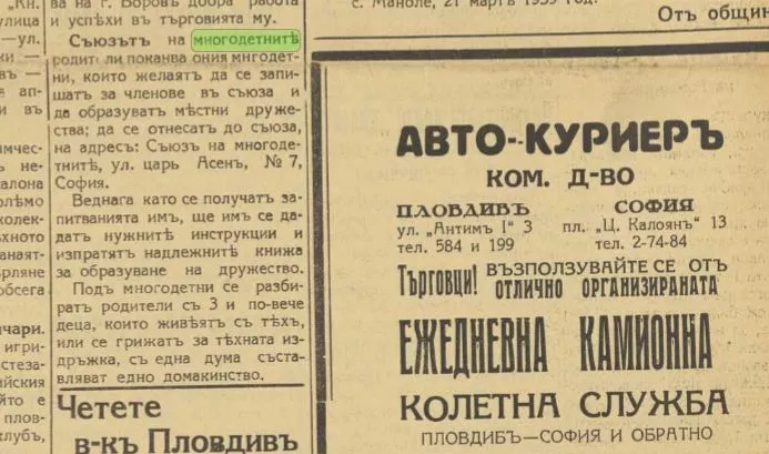 Съюзът бързо стъпва под тепетата. Изрезка от вестник „Пловдив“ от 1 април 1939 г. показва как централното ръководство призовава пловдивчани да се запишат и да образуват местни дружества. Вестникът уточнява и тогавашния стандарт – за „многодетни“ са се смятали родители с 3 и повече деца, стига да съставляват едно общо домакинство.