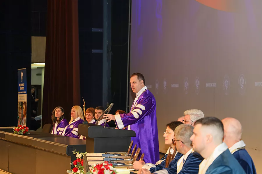 Той обърна внимание, че пред всеки млад лекар стои отговорността да съчетае знанията и технологичния напредък с етичните принципи на медицината, да възприемат пациента като личност, а не като клиничен случай. „Този избор не допуска универсални решения, а изисква зрялост, последователност и професионализъм“, беше насоката на Ректора към завършващите. Той благодари сърдечно и на преподавателите от Медицински факултет, които – по негови думи – дадоха на студентите не само теоретични познания и практически умения, а ги въведоха във великото изкуство на медицината.